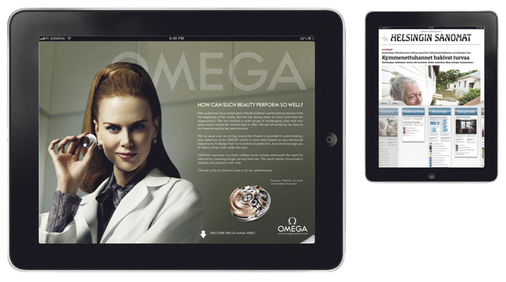 HS:n tablettimainokset: Tyyliä ja lukijan omia valintoja