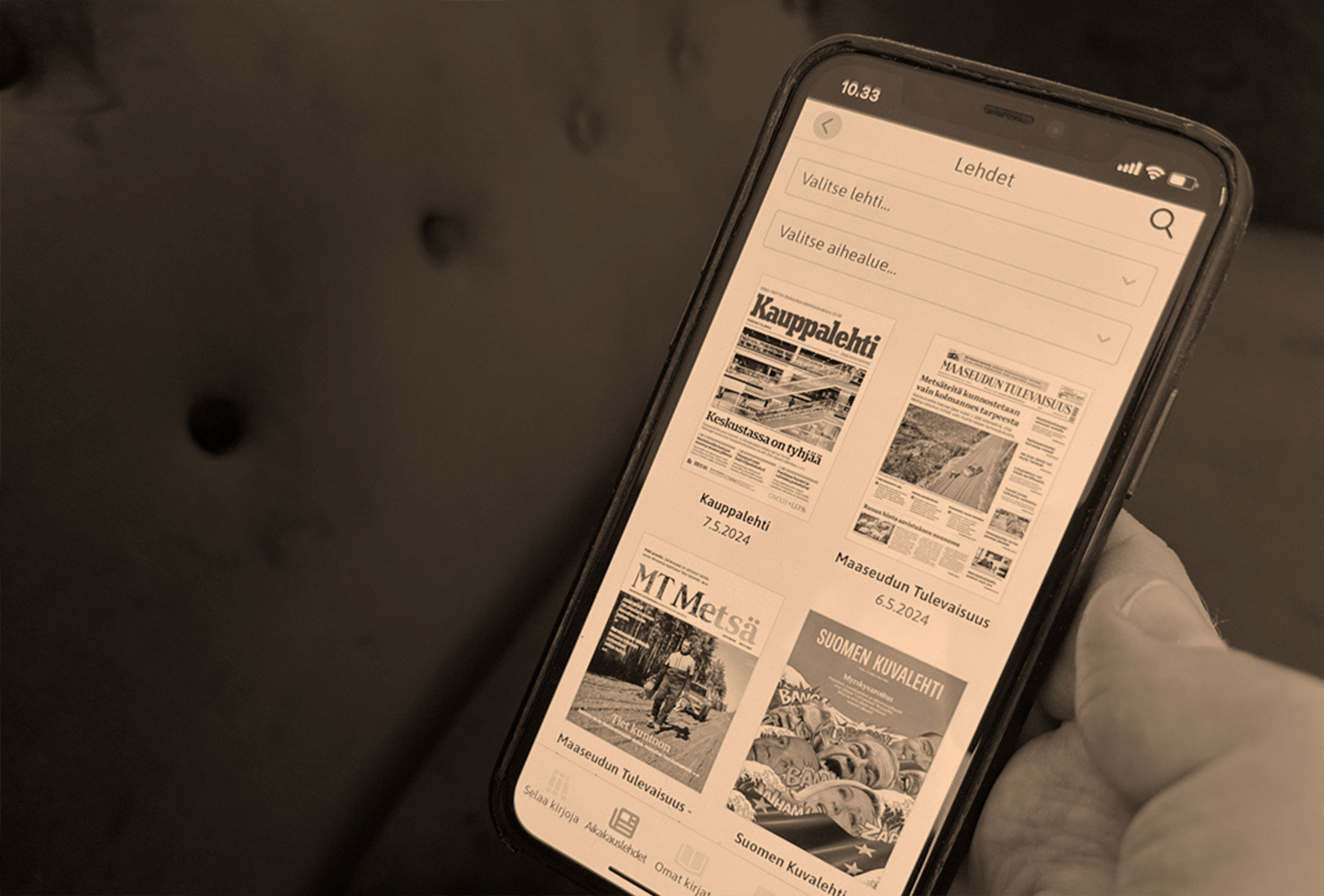 Jutun ilmestymishetkellä E-kirjasto-sovelluksessa voi lukea muun muassa Kauppalehteä ja Maaseudun Tulevaisuutta.