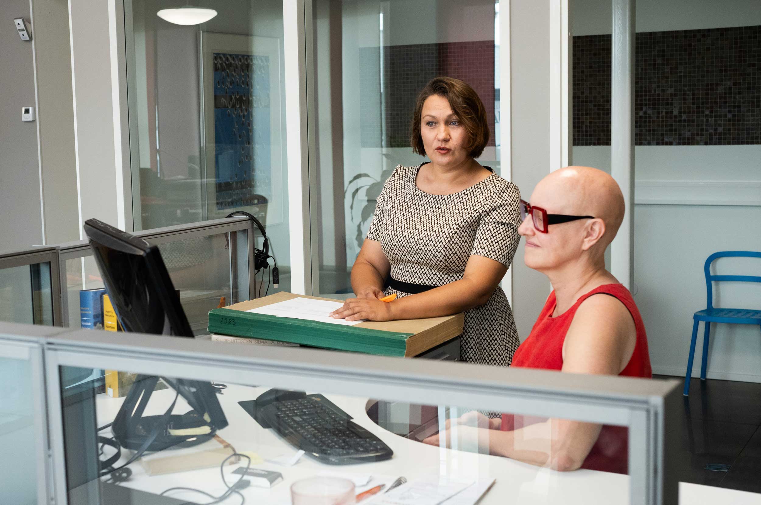 "Ohjeissa luotiin sellainen kuva, että me olisimme vähintään uhka, sen sijaan että intressinämme olisi kertoa ihmisille, mistä asioissa on kyse", Lauttakylä-lehden päätoimittaja Heli Lehtelä (vas.) kommentoi. Kuvassa myös lehden toimittaja Minna Karru.