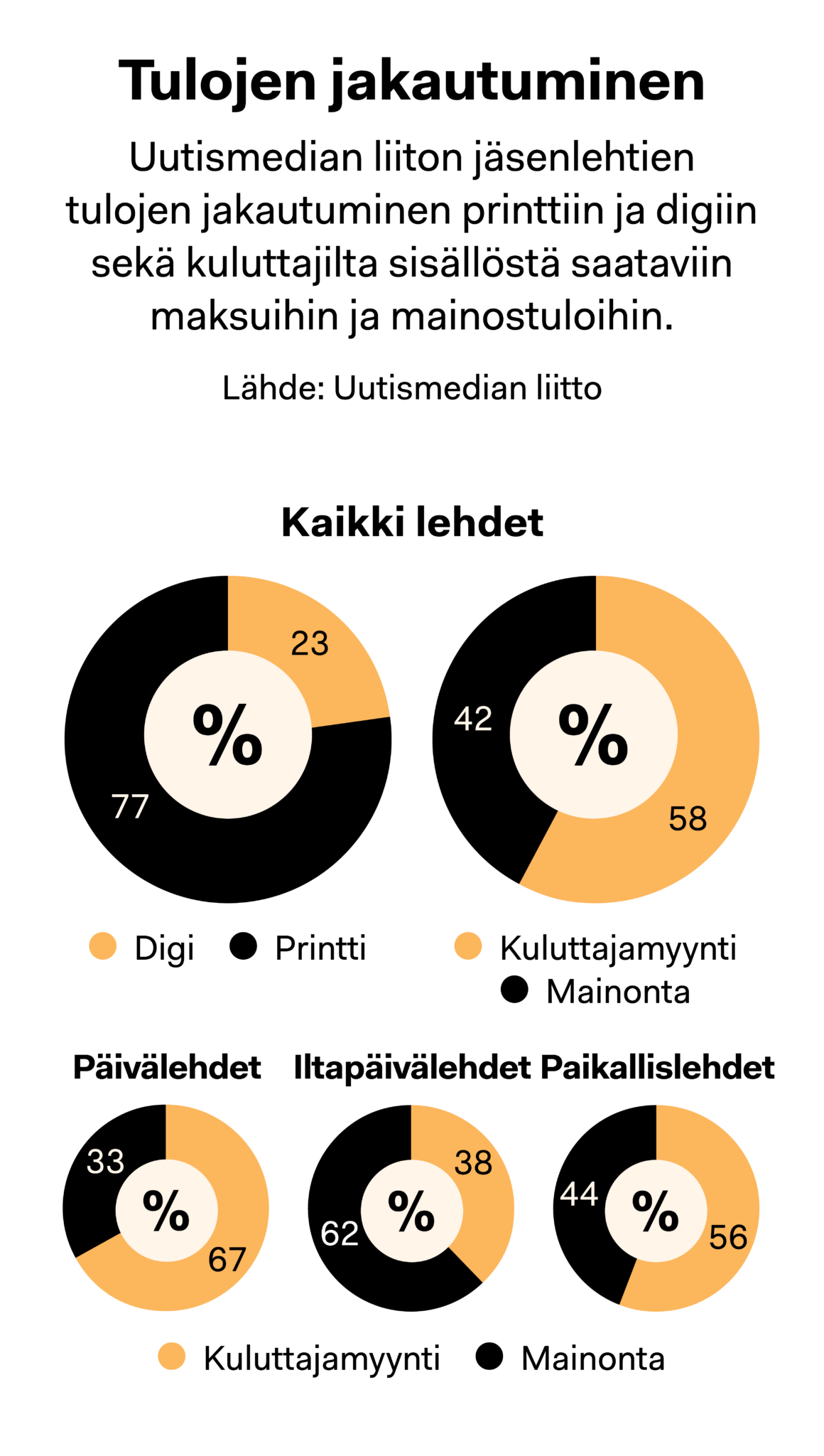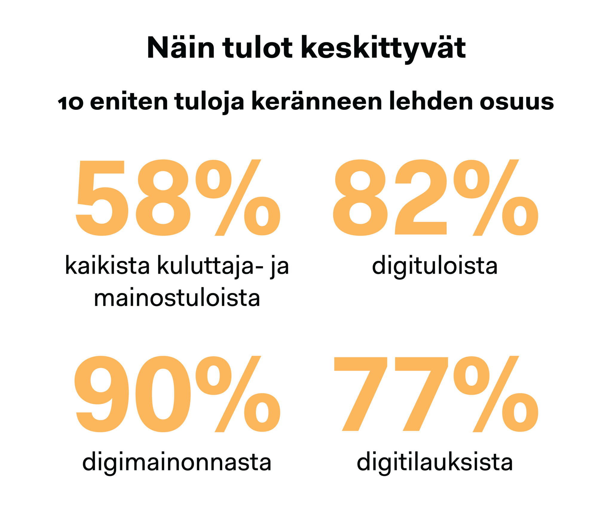 Suomessakin digitulot keskittyvät suurimmille toimijoille, ja digimainonta keskittyy jopa enemmän kuin digistä saatavat kuluttajatulot. Alueellinen media onkin laskenut paljon tilausten varaan.